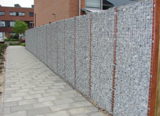 Een tevens duurzame oplossing maar met een heel andere uitstraling is een erfscheiding van schanskorven (gaas) gevuld met keien of grind. Ook dit is een oplossing waarbij genoeg creatieve oplossingen mogelijk zijn.